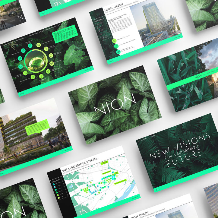Name creation and logo design for Nion, a sustainable and eco friendly office complex in Frankfurt